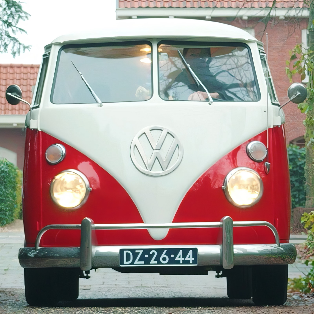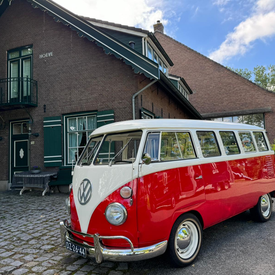 De Volkswagen T1, liefkozend bekend als de ‘Bulli’, neemt je mee op een reis terug naar de jaren ’60. Met zijn rood-witte kleur en authentieke stijl, is onze T1 een echte blikvanger.