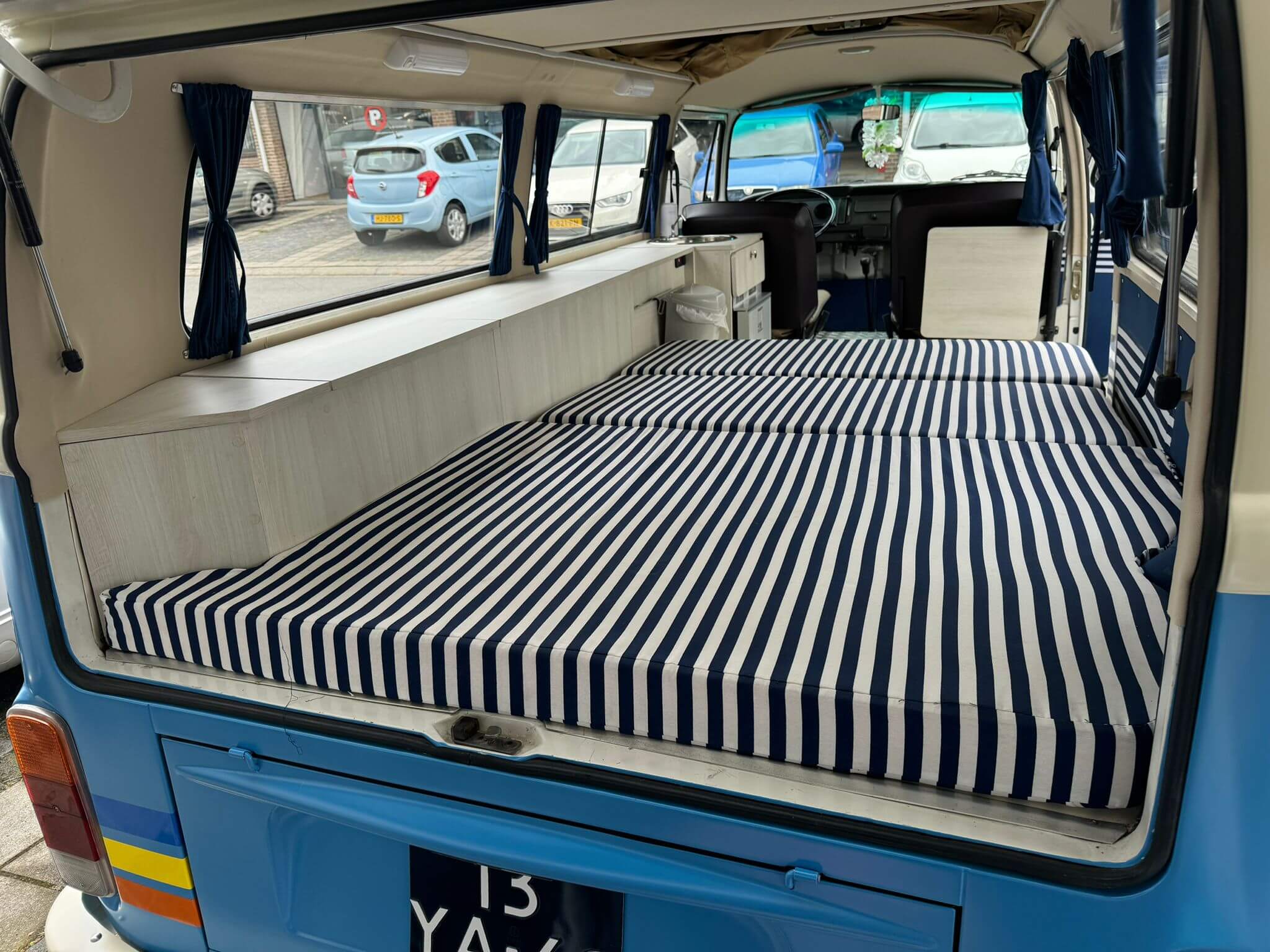 Maak kennis met camper Venus, een unieke Volkswagen T2 die je meeneemt naar een wereld vol kleur, vrijheid en retro vibes. Geïnspireerd door de speelse energie van de Netflix-film See You on Venus, straalt deze camper een onmiskenbaar gevoel van avontuur uit met zijn levendige blauwe tinten en opvallende strepen.