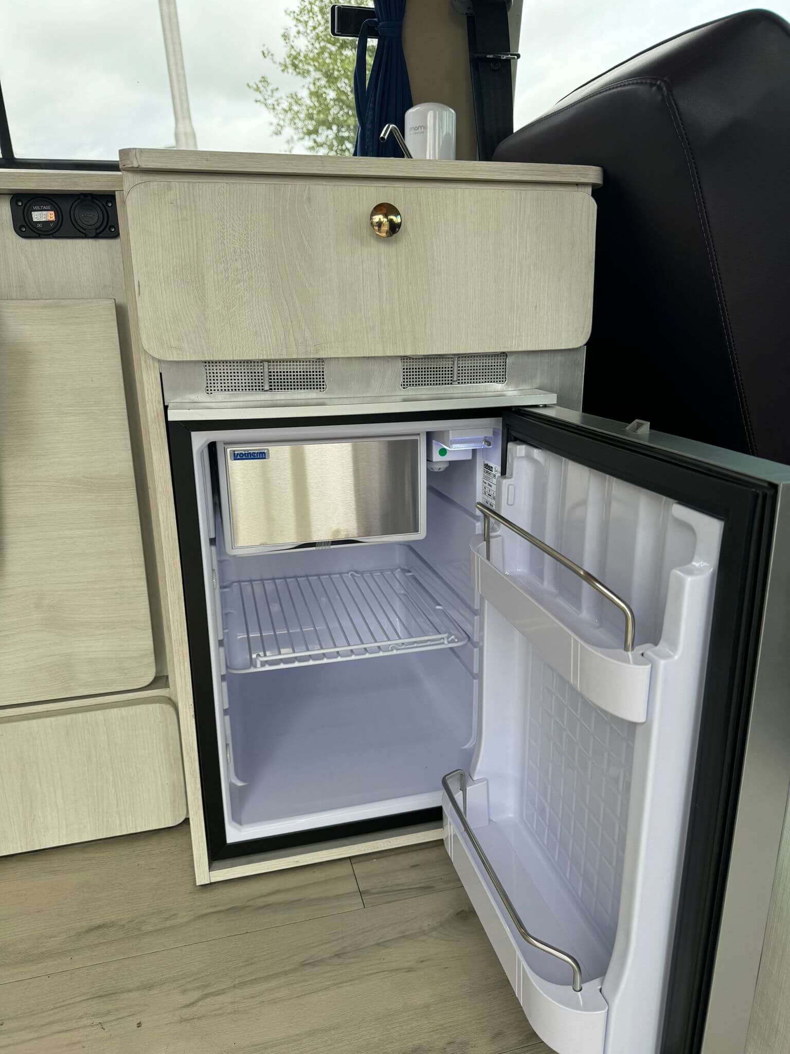 - Volledig uitgerust voor een comfortabele kampeerervaring, inclusief een koelkastje, genoeg opbergruimte en een los gasstelletje